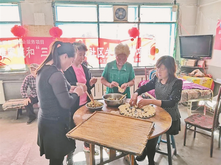 此外,由于子女不在身边,传统的家庭养老功能逐步弱化,再加上养老服务资源短缺,高潮村的养老问题非常突出,村里又没有休闲娱乐公共设施,村民的精神文化生活匮乏,在东北漫长的冬季里,大多数老人只能在家“猫冬”。3年前,希望社工团队进驻老年人口占比95%的哈尔滨市平房区平盛街道高潮村王家屯、马家沟屯,通过挨家走访“刷脸”融入村民,三年来,希望社工团队二十余名社工坚持为高潮村开展服务。
