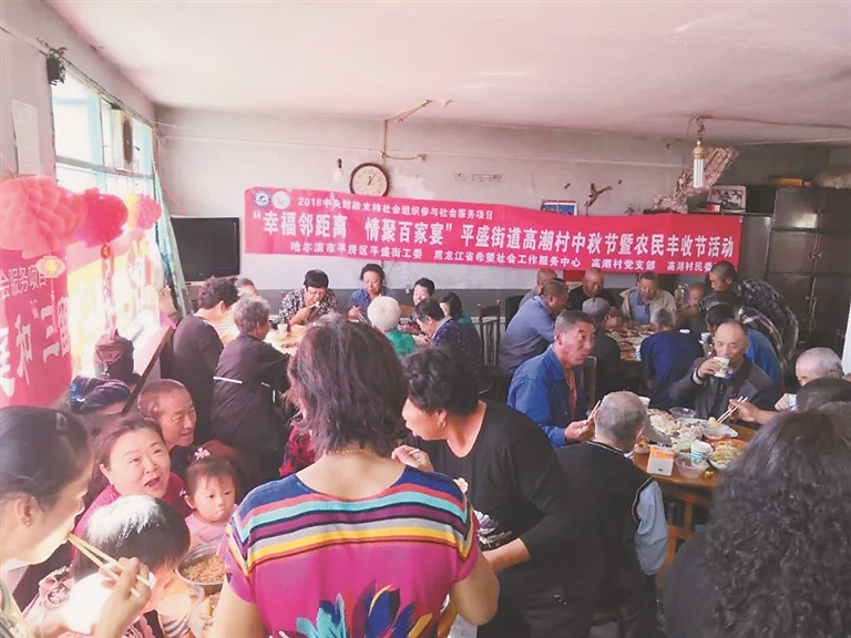 生活报讯 (记者李丹)“ 60岁的刘淑燕多年前住在平房区平盛街道高潮村,得知村里要举办‘幸福邻距离 情聚百家宴’后,于活动当日带着自己的拿手菜——三丝爆豆、鸡胗炖土豆、蒜蓉娃娃菜,早早地回到村里。当时村里有一百多人来参加,还扭起了东北大秧歌,热闹极了。”说起2019年的百家宴,黑龙江省希望社会工作服务中心副总干事高珊打开了话匣子。