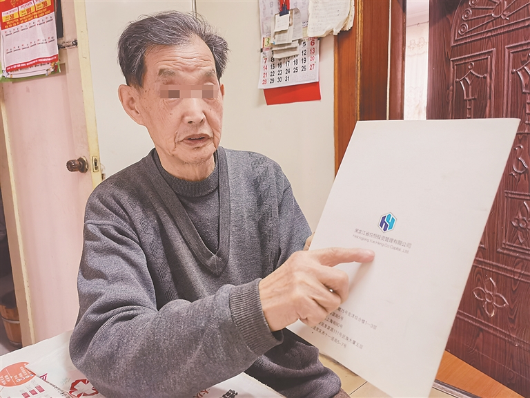 生活报讯 (记者栾德谦文/摄) 近日,一位哈尔滨市民向本报记者反映,自己于2015年购买“悦恒投资”的理财产品,自己被当时的“高收益率”所吸引,2016年这家公司人去楼空,自己只得到了几百元的返利,2万元本金打了水漂。这位被骗大爷表示,想提醒广大老年人,不要购买非正规金融机构的理财产品。