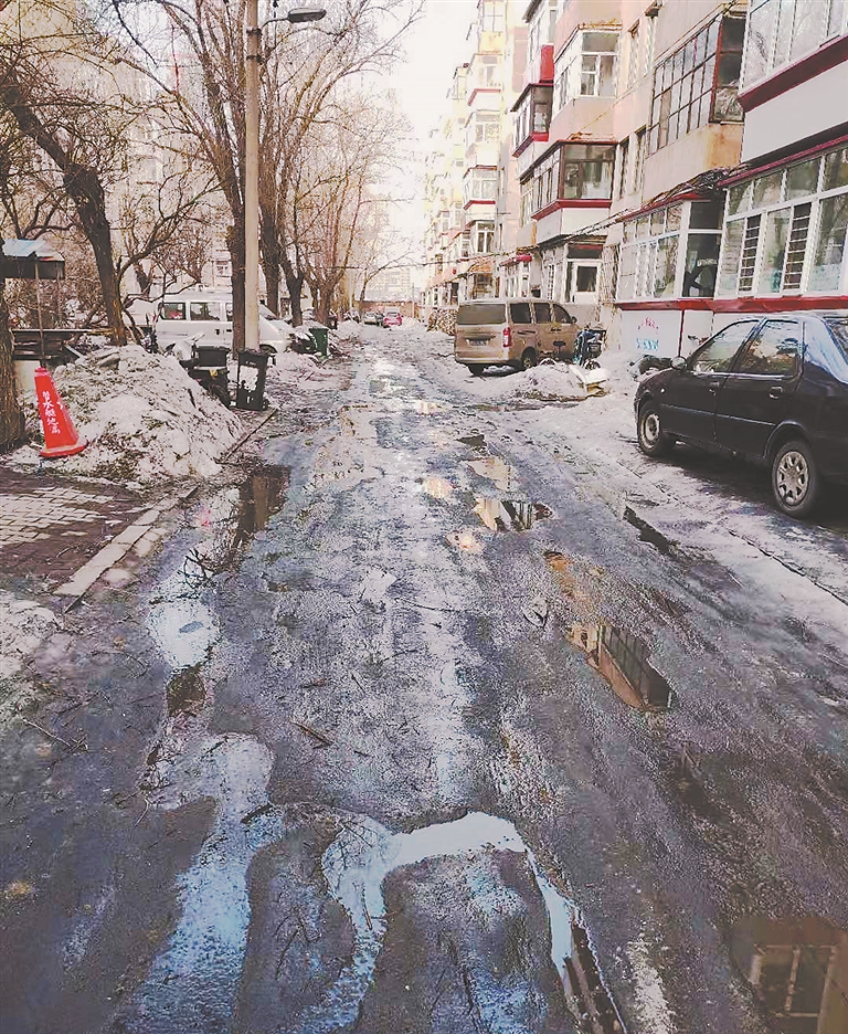 生活报讯 (记者史天一文/摄) 近日,记者接到哈尔滨市香坊区三新小区居民的投诉,称小区单元门前地面出现了下沉现象。而且由于春季开化,小区里面的道路泥泞不堪,给居民出行带来了很大麻烦。居民联系了多个部门,但一直没有人出面处理。对此,记者进行了走访。