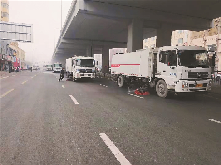 此外,全面推行“以机械化清扫为主、人工保洁为辅”清扫车、洗扫车、水车采取组合作业模式,争取在最短的时间内消除风天扬尘带来的影响。