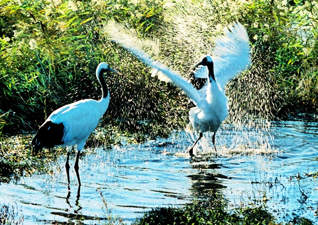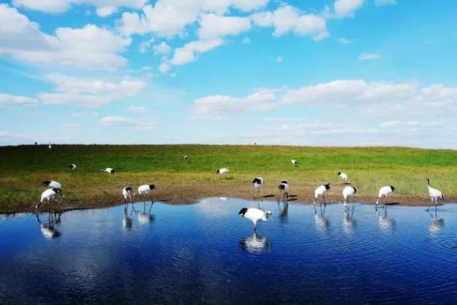 齐齐哈尔扎龙国家级自然保护区是我国以鹤类等大型水禽为主的珍稀水禽分布区,是世界上最大的丹顶鹤繁殖地。这里苇草肥美、鱼虾丰盛,是鸟类繁衍的天堂,也是丹顶鹤的故乡。每年有6种珍稀鹤类在此繁殖停歇,素有“鹤乡”之称。