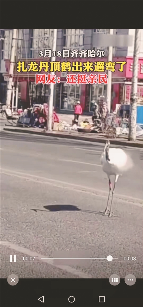 生活报讯 (记者薛宏莉) 最近,一只丹顶鹤上街遛弯的视频在各大平台火了。视频中的“溜达鹤”在齐齐哈尔街头悠闲散步,引全网围观,网友表示:还挺亲民。也有人对这只丹顶鹤的身世产生了兴趣,它是哪里的鹤?家境如何?家中都有谁?今天咱就去“溜达鹤”的家乡看看。