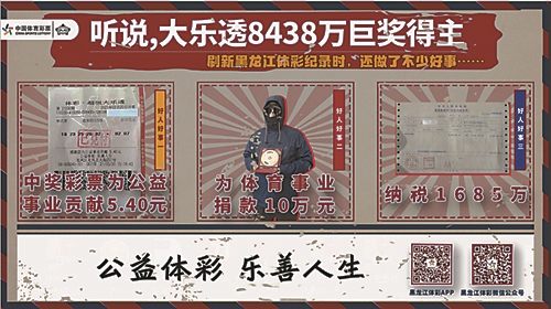 生活报讯 (王明琛 记者杨镭) 在3月20日晚开奖的体彩大乐透第21030期中,黑龙江省大庆市一位幸运者独揽8438万元奖金。这位巨奖得主在刷新黑龙江体彩史上大奖纪录的同时,还做了不少好事……