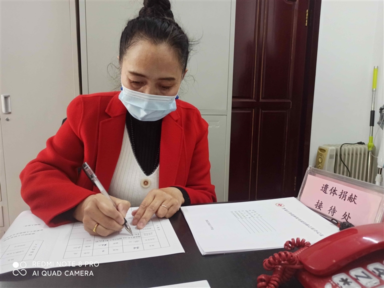 经过了漫长的康复期,3月29日,崔波在呼兰区红十字会李晓磊的帮助下,在《哈尔滨市遗体眼角膜捐献志愿登记表》写上自己的名字。