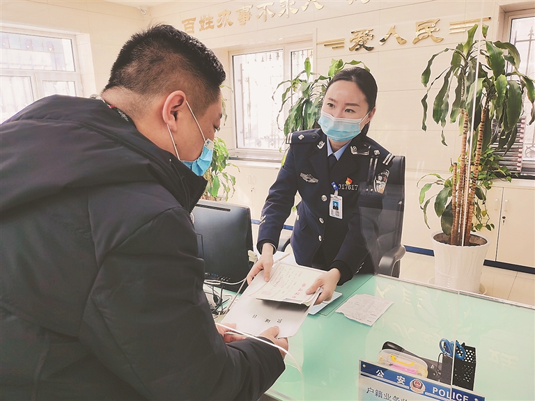 户籍民警闫佳佳通过视频连线,与张女士“面对面”交流,并认真查看了张女士的落户材料,条件完全适合《关于重申引进人才等外入落户业务相关规定的通知》的新政策,在由其前来办理业务的叔叔代写申请书后,为其开出准迁证。 图片由警方提供
