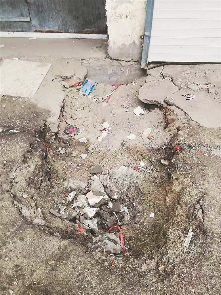 生活报讯 (实习生郝天朔 记者黄迎峰文/摄) “我们家车库门口有个大坑,我从去年到现在都已经掉下去两次了。”日前,家住哈尔滨市道外区黎华小区C区8栋的崔先生给记者打来电话称,因为自来水公司的二次供水改造工程,自己家的车库门前有一个大坑,车出不来,人行走也非常不方便。30日,记者来到黎华小区A区和C区发现,单元门口、人行道、车库前,有多处大小不一且深浅各异的坑。
