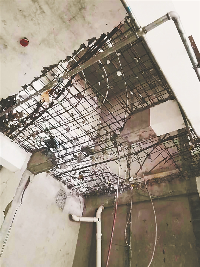 其他居民说,要是普通装修也就算了,可是商服的装修基本上都是涉及到主体改动的大工程。居民集体到楼下去调查,发现多个商服打通楼板安装电梯和楼梯,有的拆改占用消防通道和楼梯。更让他们担心的是,有些商服为了安楼梯竟然将一楼棚顶的承重横梁拆了。