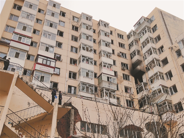 11时许,记者赶到现场看到,大方里街已封闭,四周拉起了警戒线,数台消防车和120急救车停在路边,多个部门工作人员正在现场进行救援和勘查。来到225栋,记者注意到整栋楼居民家的玻璃几乎都受损破裂,地面上散落着大量玻璃碎片和窗户框架。