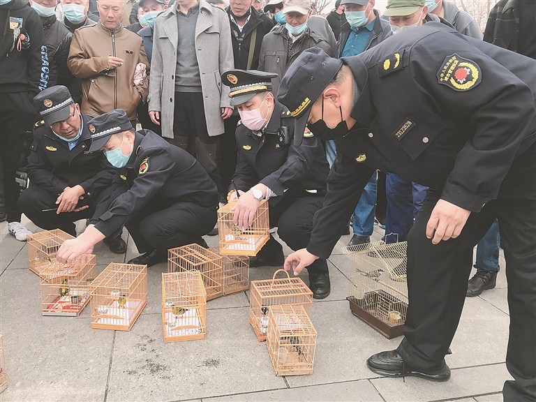 生活报讯 (记者黄迎峰) 3月31日,哈尔滨市道外区执法部门频频接到市民举报,道外区江畔路与五道街交口小广场,经常有人用自制竹笼装着捕获的本地野生鸟类贩卖。当天上午,道外区综合行政执法局组织林草中队、沿江分队,对沿江区域贩卖野生鸟类的违法行为进行了集中查处,现场将鸟儿放归大自然。