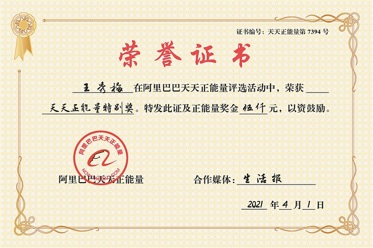 王秀梅路边救人的事迹,被很多人点赞,也获得阿里巴巴天天正能量公益平台的关注。1日下午,天天正能量工作人员联系本报记者表示,天天正能量将联合生活报为王秀梅颁发正能量特别奖及5000元奖金。