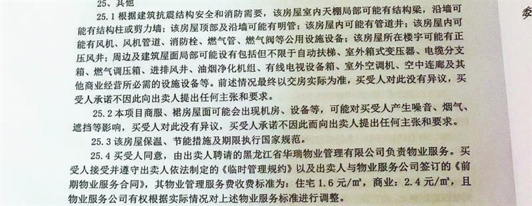 记者在张先生出示的合同中看到,该物业管理服务费标准为:住宅1.6元/平方米,商业2.4元/平方米。