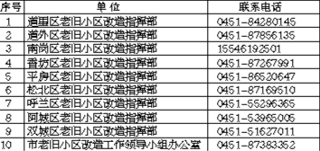 哈市市、区老旧小区改造 指挥部咨询服务电话