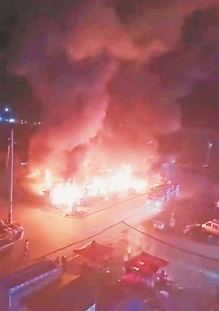 从知情者提供的视频看到,起火的是多处平房,现场火光通亮、浓烟滚滚,消防部门正在进行打水扑救。大火被控制后,可以看到房屋基本上都被烧塌架。