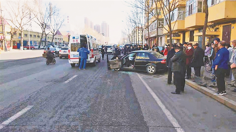 生活报9日讯 (记者史天一文/摄) 9日9时20分左右,在哈尔滨市道外区友谊东路316号门前路段,一辆黑色轿车驾驶员疑似突发心脏疾病导致车辆失控,接连与两车相撞后才停下,驾驶员当场身亡。