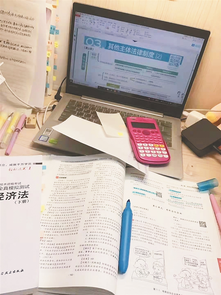 在自习室里,还有一些大龄学员,比如“70后”的李女士,她要考注册会计师,每个周末都会和上中学的女儿一起来上自习,母女俩座位挨着。比起考证,她似乎更想给孩子树个榜样——“活到老学到老”不只是说说而已。