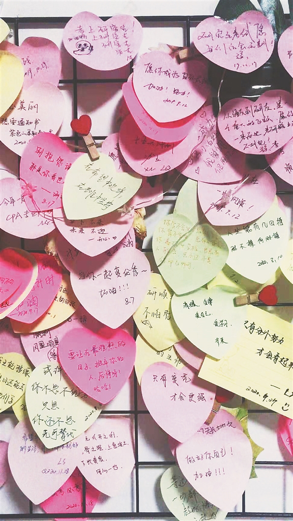 书桌上的倒计时牌,仿佛让人秒回高三的夏天;许愿墙上有人放狠话:“只有变秃,才会更强”;有人不学习玩手机,管理员会像班主任一样,从身后“路过”;考前冲刺的一周,有人干脆直接在自习室里打地铺……