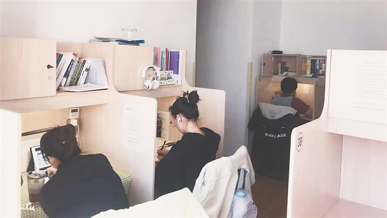 “在家学习的话,书桌旁可能就是床,一旦躺下就很难起来了。”1993年出生的冰城姑娘小葛感慨道:“自习室基本上只有自己学习的地方是属于你的,别的地方没地方呆,而且周围人都在学,你自己不学玩手机,会有负罪感。”