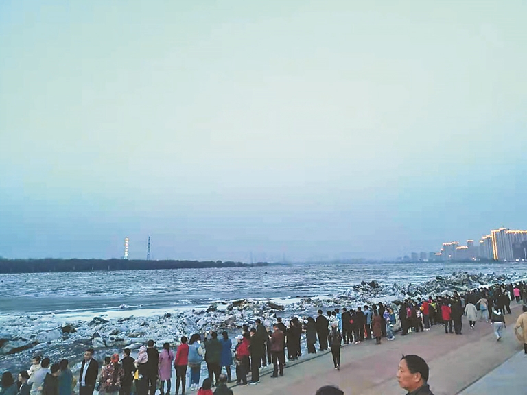 记者从黑龙江省水文水资源中心获悉,10日14时,松花江干流佳木斯段开江,开江日期较常年提前4天,开江水位77.23米。记者从佳木斯当地市民提供的图片、视频中看到,松花江佳木斯段开江非常壮观,巨大的冰排被推到岸边,引来众多当地市民围观。