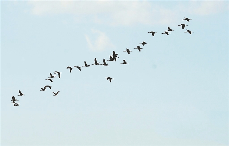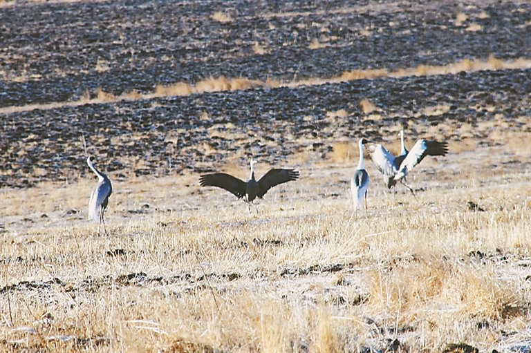 保护区科研人员和各监测站、工作站人员对候鸟的回迁情况开展全天候的监测,4月2日,随着几声清脆的鹤鸣,2只白头鹤,4只白枕鹤迁回到大沾河湿地保护区乌斯孟监测站。
