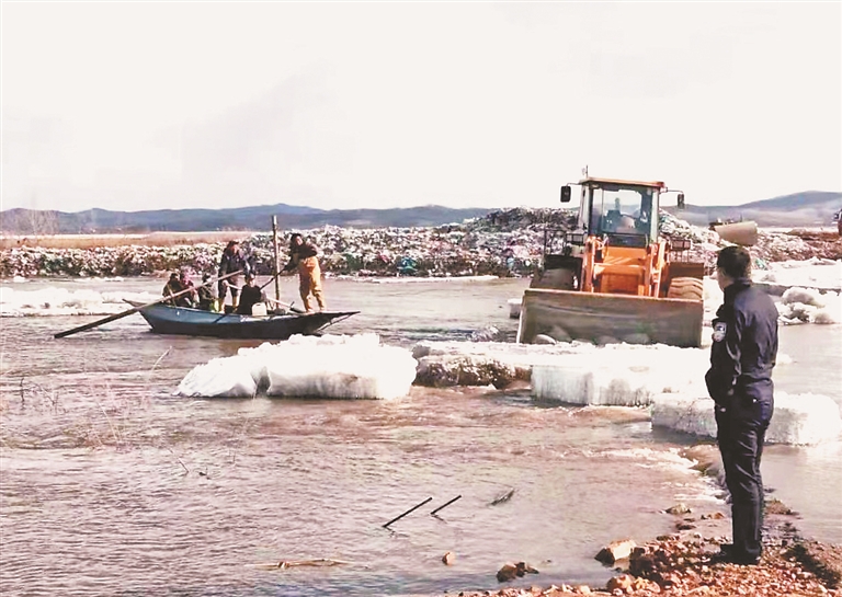 生活报讯 (记者时继凯) 10日下午,在松花江哈尔滨通河县江段出现了惊险而又感人的一幕。当地4名村民去位于江心的老沙场扣大棚作业中,不想巨大冰块顺流下泄形成凌汛,江水瞬间暴涨包围江心小岛。辖区警方多名民警迅速赶来救援,在警民众人合力下,被困4人才及时获救。