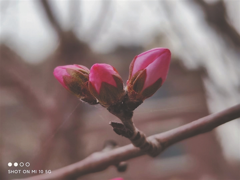 生活报讯 (记者李丹) 连日来,哈市气温变化明显,雨水、小雪都在催生冰城的春花绽放。细心的市民发现,在松北区部分路段京桃花已经含苞待放,而在积温较高的市区内,一些路段京桃花也“初露端倪”。记者采访到哈市园林办规划科技处处长胡守荣,据她介绍,今年京桃花比往年早绽放一周左右。