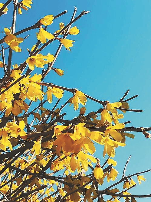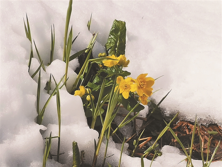四月中下旬,在春暖花开与倒春寒的间隙,鹅黄色的迎春花绽放在雪花间,堪称龙江之春一大奇景。