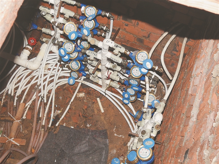 记者跟随房先生来到枫彩家园2-6门市房,电表安装在门市房后面的一个井里,打开井盖,里面排列着很多水表。这怎么能知道谁家是哪一块水表呢?房先生说:“我听邻居说,安装新水表时,都是工作人员拿着对讲机,逐一通知附近的居民,每一块都仔细核对,包括原水表里的字数。但安我们家门市房的水表时,根本没有通知我,也没有通知我的房东,不知道他们是怎么核对水表上的数字的?”