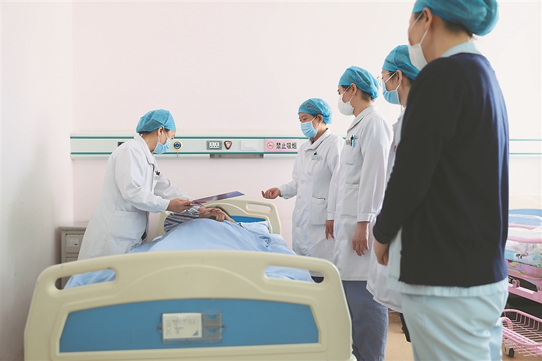 “超声提示王女士子宫内部严重粘连,具有多条粘连带,致使胎儿被包裹限制成被动横位,由于手术难度大、风险高,我们术前要做好各种预案,比如新生儿科医生进入手术室、通知血库备血等。”在剖宫产手术之前,史秀伟护士长及时发现王女士情绪变化,对她进行心理疏导。