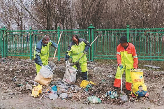 生活报讯 (记者李丹) 15日,在哈尔滨南岗区哈双公路沿线出入城口附近,环卫部门开始清理沿线卫生,捡拾塑料袋等垃圾。