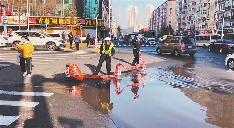 生活报讯 (记者史天一) 15日3时30分左右,哈市道里区新阳路与哈药路交口附近一处路面开裂,大量清水从裂缝处流出,街面“汪洋一片”。记者从哈尔滨供水集团了解到,漏点是一处供水管线,预计晚高峰前维修完毕。