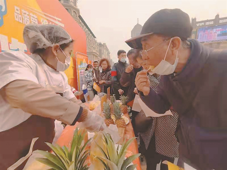 生活报讯(记者仲亮 文/摄)“这味道太赞了,还是头一次尝到这么爽口的菠萝。”15日,在哈尔滨防洪纪念塔,广东和黑龙江两地联手举行了一场特殊的品鉴活动,龙江的马铃薯种到南方,南方的农产品进驻龙江市场。