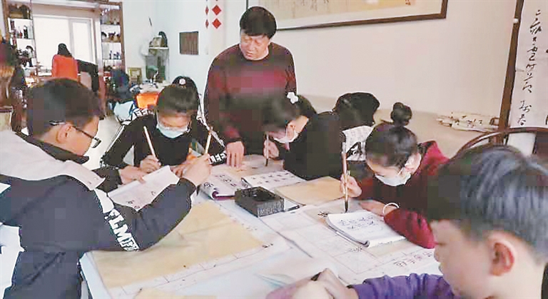 “我是1991年考入了日本东京学习艺术专业,2000年回国,至今一直从事书法教学工作。”郎树春的徒弟刘明昌和记者说道:“我从7岁时就跟着老师学习书法了!那时候老师只有晚上有时间学习书法,为了节约时间多教我一些知识他就经常睡在我家。”郎树春指导过的学生中有很多考入名校进行专业的书法知识学习,其中也有很多继续从事书法相关的工作的。“书法不仅能修身养性,还有博古通今的道理值得学习。就像郎老师不仅教给我们技艺,更是传承给我们一种自强不息的精神。”