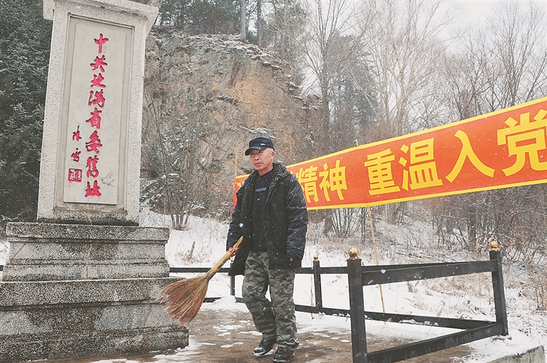 “山高、路滑,注意脚下,登上418级台阶,就是胜利!”清明节前夕,一位老人带着儿孙,冒着春雪早早地赶赴锅盔山顶的“中共北满省委旧址”进行祭扫。他们擦拭纪念碑、清扫路面、凿冰除雪,为清明期间将要前来祭奠英烈的人们提供方便。