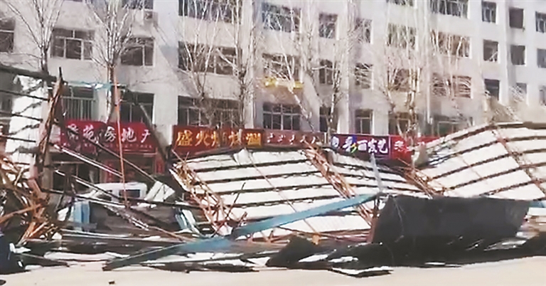 21日,记者从集贤县县委宣传部获悉,20日10时04分,集贤县受突发性8级阵风(极大风速达到18.6米/秒)影响,正处在西北风口的集贤县公安公寓东侧房顶部分彩钢板被吹落,造成3名过路行人受伤(1人伤势较重经抢救无效死亡,其他2人轻度损伤),受损车辆10台。