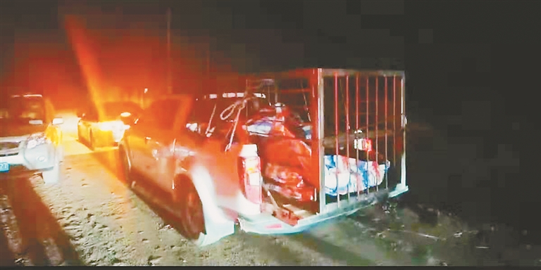 记者获悉,老虎被麻醉控制住后,被装进了事先准备好的铁笼中带走。记者从现场工作人员提供的视频中看到,老虎在一片树林中被麻醉,被麻醉后的老虎一动不动,由于太重,三四个壮汉都抬不动,大家喊着号子才把老虎抬到一块防雨布上,装进了铁笼子里,用皮卡车拉走。
