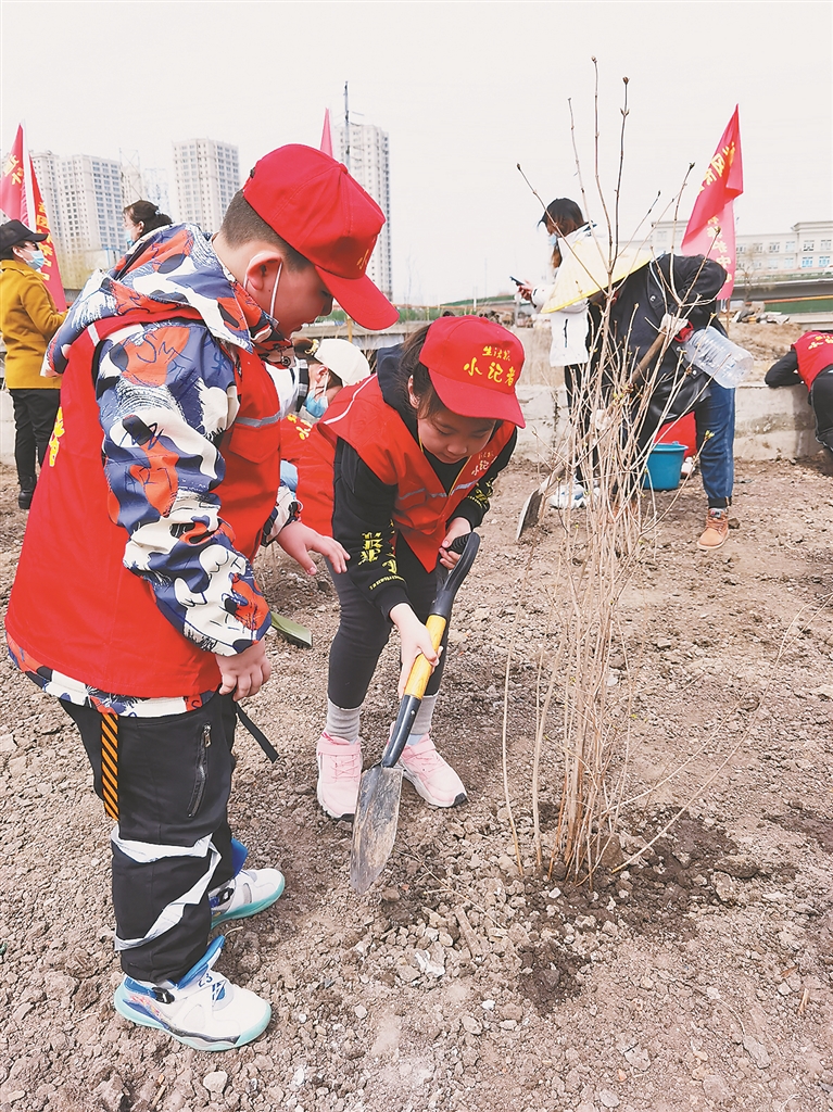 成长 小记者挥铲植绿