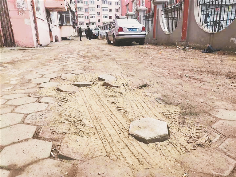 25日上午,记者来到哈量新区,在24栋附近记者看到,路面上的步道板已破损,有的已经丢失,地面上布满尘土,一阵风吹过尘土飞扬。在25栋附近,记者发现路面破损的更为严重,路面上布满了小石子和黑色的沥青碎块,23栋楼下的路面则是一条坑洼不平土路,土坑一个连着一个。孙先生介绍,去年十月份,小区开始更换供水管线,施工期间,供水公司挖开了小区的路面,更换完管线后,供水公司没有对路面进行及时维修,导致小区的路面破损严重。“前段时间,积雪开始融化,小区道路泥泞不堪,影响了居民们的正常出行。”孙先生说,路面坑洼不平,晚上出行经常崴脚。如果再不及时维修,过段时间遇雨天,又将给居民们的出行带来不便。居民们多次找到物业公司,可是,问题一直没有得到解决。