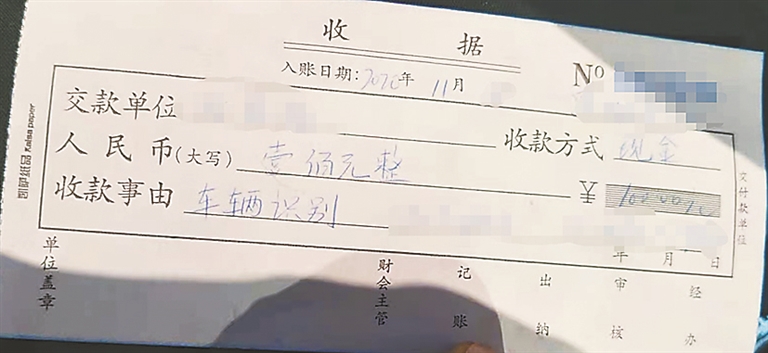 记者表示,居民缴纳了物业费,咋进车还得交费呢?有相关部门的收费审批手续吗?旁边一位工作人员说,别说这挡杆费的审批,就是物业费也没有审批呀!问及交费时限,这位工作人员说:“一车交100元就行,没啥时间限制,以后再说。”