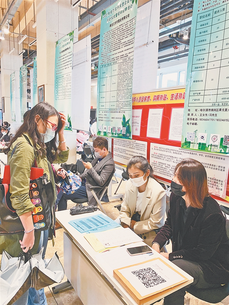 生活报讯 (见习记者崔凯歌 记者吕晓艳 文/摄) 27日上午,哈尔滨市民营企业招聘月活动现场招聘会在哈尔滨人力资源中心1号楼招聘大厅举办,本次招聘活动有87家企业参会,提供5800余个就业岗位。