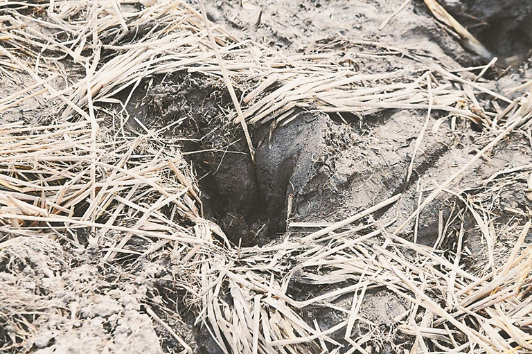 在临湖村十组的房屋夹空的草丛中,老虎趴了两个多小时,然后,它又信步来到二组的大地里。此时的大地正在备耕,空间广阔不适合隐蔽,但是老虎还是潜伏在草丛中,一度从人们的视野中消失。
