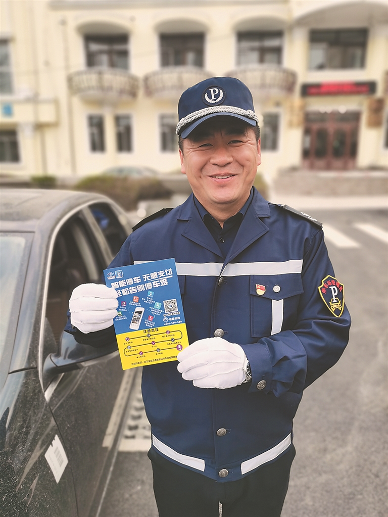 38岁的郭连杰在停车场工作15年,“五一”期间,他放弃回老家探望多年未见的年迈母亲的机会,走上工作岗位,积极推广“城泊通”APP,以为广大车主服务为快乐!
