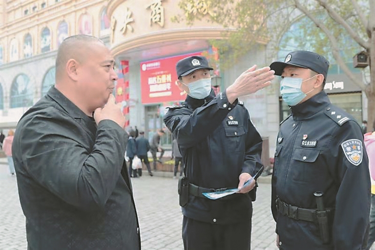 5月1日早7点半,石绍文和当天同组巡逻的教导员杨帆,就已经来到了离中央大街不到200米的派出所。他俩对着镜子整理好着装,将单警装备佩戴整齐,随后来到了中央大街,开始当天连续16个小时的安保任务,随时承担着“巡逻警、宣传警、治安警”不同职责。 图片由采访对象提供