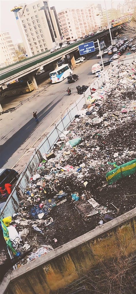 5日上午,记者来到文君街53-1号附近。记者看到,刘先生反映的垃圾堆位于文君街与教化街交口处的围挡当中,站在教化桥上,垃圾堆里的场景清晰可见,里面布满了生活垃圾,一阵风吹来,塑料袋乱飞。刘先生告诉记者,堆放垃圾的地方原先是违建,拆除之后被合围起来,去年冬天城市积雪存放于此处,不但有附近的居民往这里倒垃圾,还有个别环卫工人在此倾倒垃圾。在冰雪融化过程中,污水流淌到马路上,并散发难闻的异味,影响了周围市民的工作与生活,为此,附近居民曾多次把此事反映给城管等部门,但是,垃圾一直没有被清理。