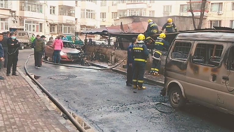 生活报讯 (记者史天一) 5日3时50分左右,哈市南岗区新发小区一车棚起火,火灾造成多辆电动车、摩托车和两台私家车被烧毁,所幸没有造成人员伤亡。