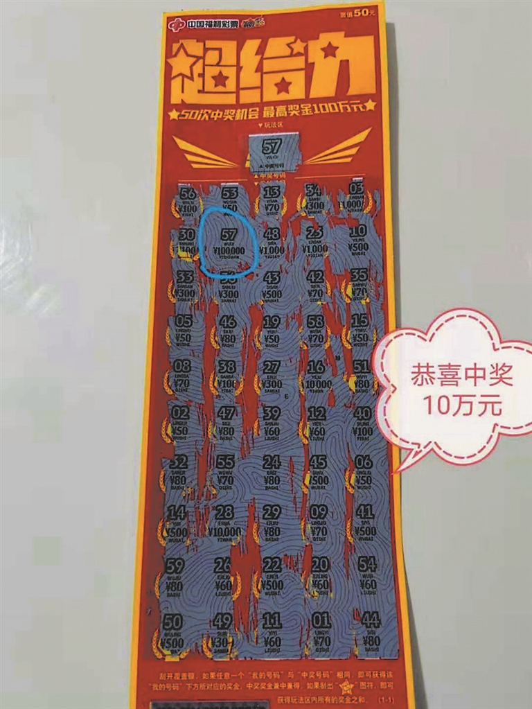 4月26日下午,张先生来到七台河宏伟镇的一家福彩销售站,购买了一张面值50元的“超给力”彩票。当张先生刮开第二排第二个数字时,他发现自己中奖了,接下来看到中奖金额,更令他激动不已。张先生仔细地、小声地读着中奖金额的位数,又让销售人员帮忙确认,这才相信自己真的幸运中得了10万元大奖。