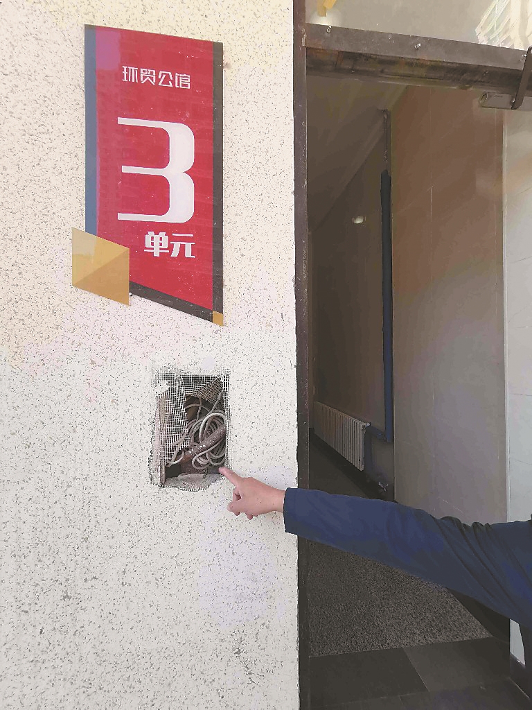 据居民杨女士介绍,她是2017年买的房子,2020年4月份入住的,“因为宣传时说地理位置好、物业好,是哈尔滨一处高档小区,所以我才选择了这里,没想到一点没感受到高档小区应该有的质量与服务。当时买房子时说得特别好,承诺给我们安装指纹锁,安装可视门铃。结果,现在所有住户都是装修时的普通锁,墙上也都留着装可视门铃的大窟窿。”