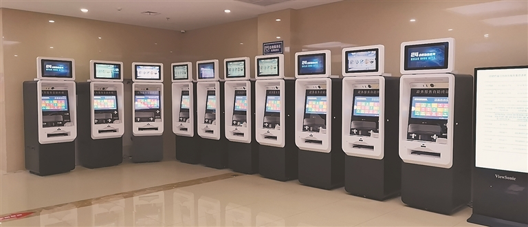 生活报7日讯 (记者张立文/摄) 通过刷身份证+人脸识别认证的方式,就可以自助办理各部门的热门事项。7日,记者在哈尔滨市民大厦看到,一层设置的自助服务区内首批10台“e冰城”综合自助终端上线运行。今后,市民不用到窗口即可在自助机器上办理医保、户籍、人社、税务等各200多个服务事项,快速更便捷。预计第二批90台自助终端,将放置在街道(社区)等人口集聚区的办事大厅或服务点。