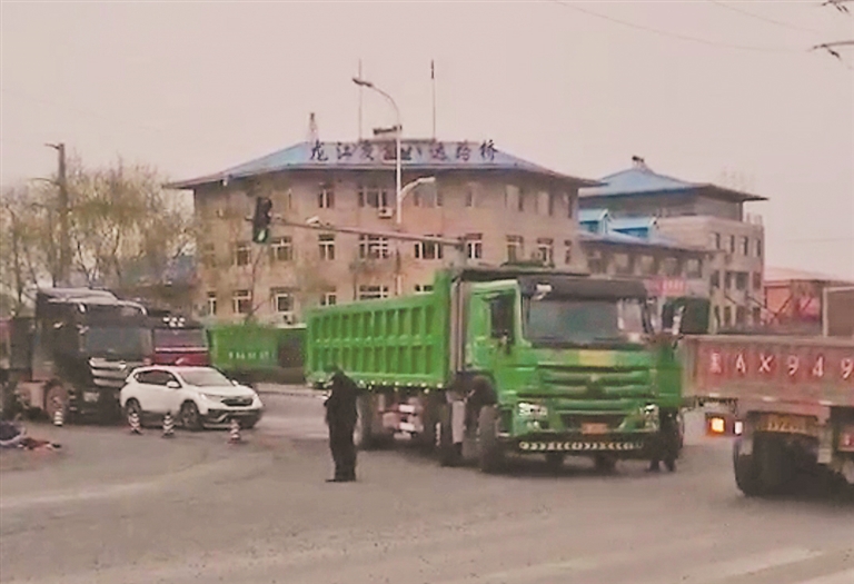 生活报讯 6日17时左右,在哈尔滨市阿城区延川大街与中都大街交口附近,一辆翻斗车与一名骑三轮车男子相撞后,翻斗车从男子身上碾压过去,事故导致男子当场死亡。