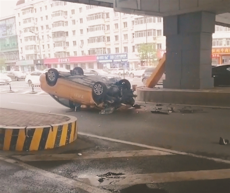 记者从交警部门了解到,事故发生时出租车内有两名乘客,出租车四脚朝天翻车后,车内两名乘客不同程度受伤,出租车驾驶员腰部轻微扭伤,无其他伤者。